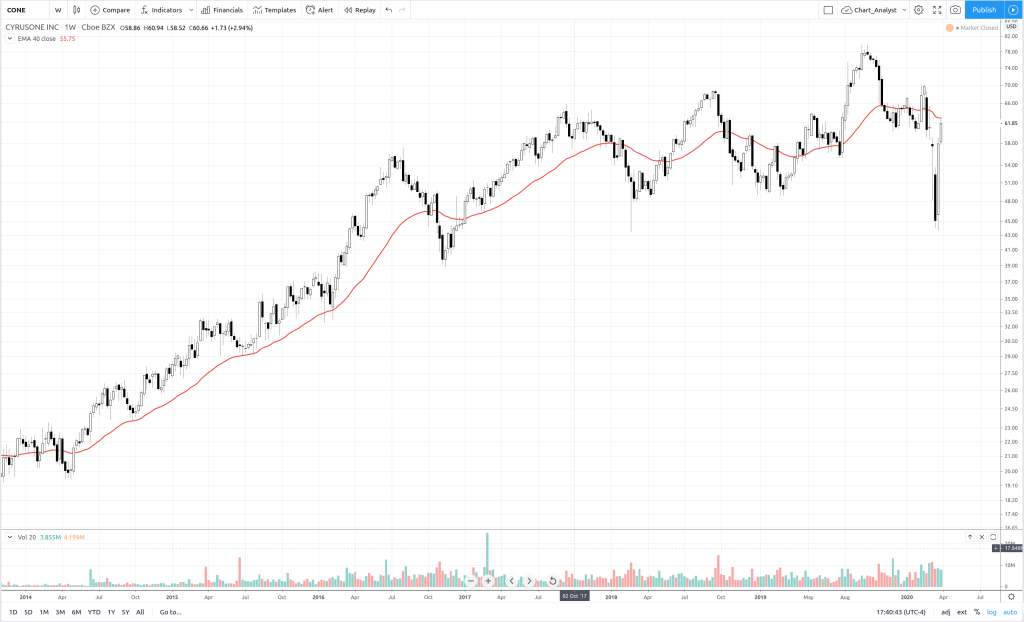 Cyrusone Inc, CONE, is a REIT that provides data center facilities for IT infrastructure.