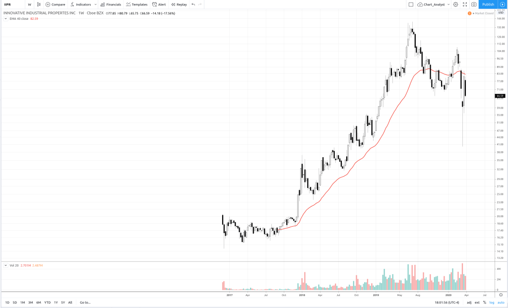 Innovative Industrial Properties Inc (IIPR) is a REIT that leases properties to marijuana growers. They express it in a more delicate fashion, but that is essentially where they focus.