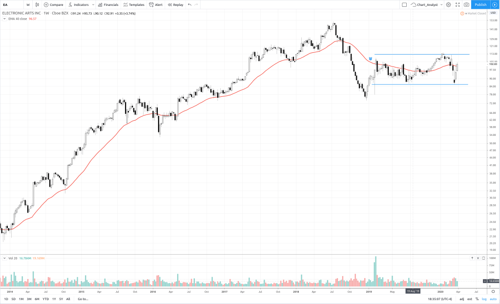 Electronic Arts, EA, is still in a 15 month rectangle sideways consolidation. It seems no one has informed EA that a pandemic is happening. 🙂